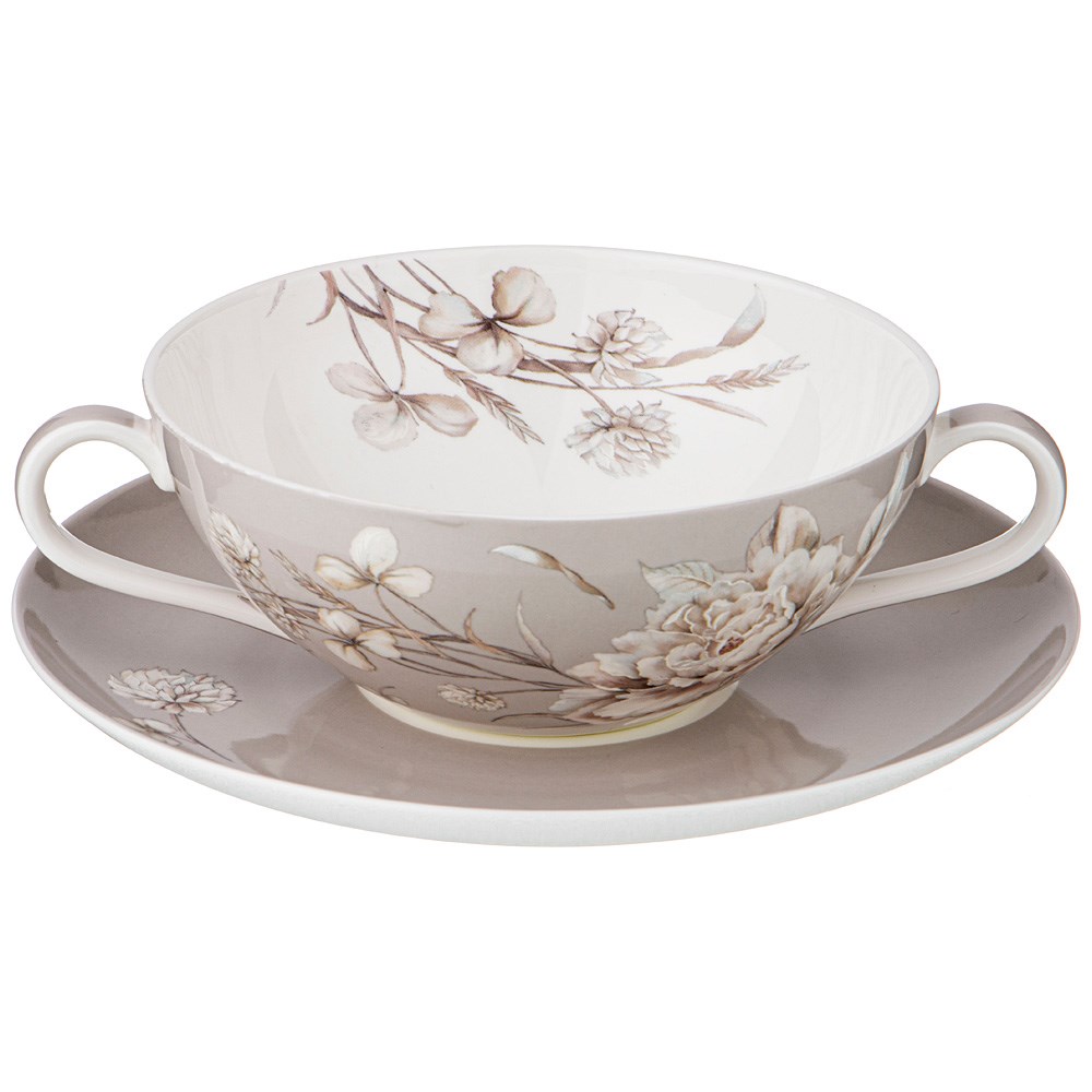 Бульонница с блюдцем lefard "Белый цветок" 450 мл серая