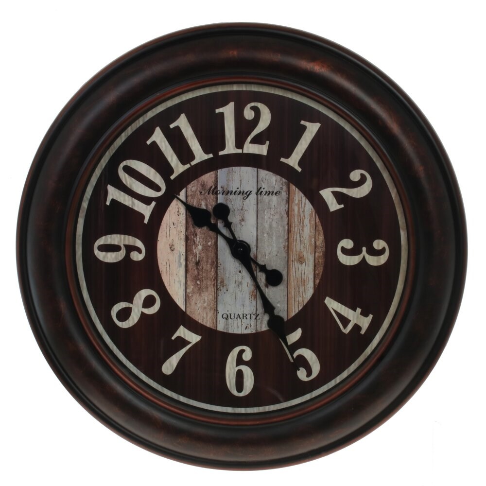 Часы настенные декоративные отлично выглядят в интерьере и дополняют его. Циферблат круглый 44 см, с арабскими цифрами. Стрелки: часовая, минутная. Механизм: кварцевый. Питание: одна батарейка АА (не прилагается).