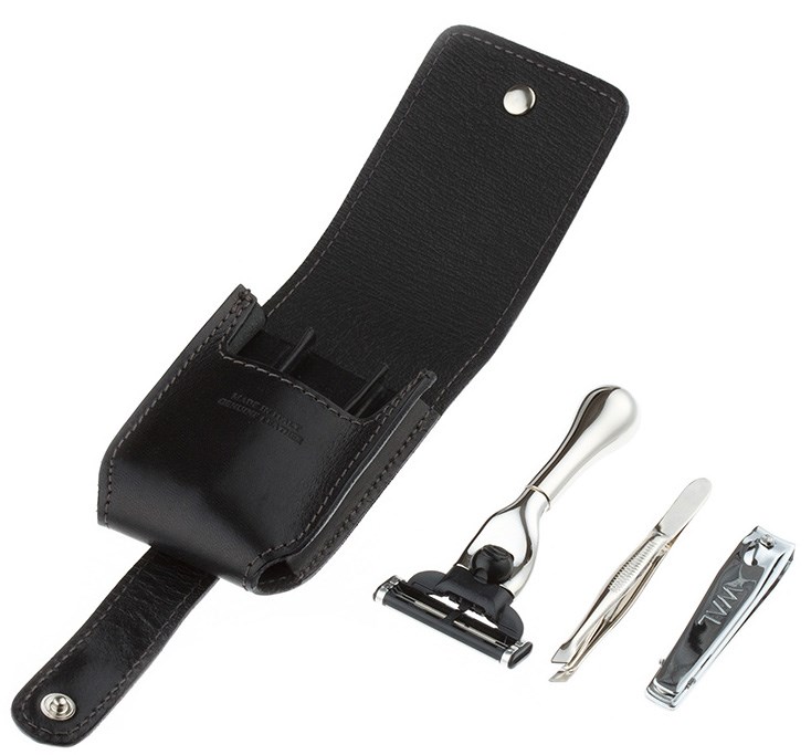 Дорожный бритвенный набор IL Ceppo в черном чехле: станок, пинцет, книпсер