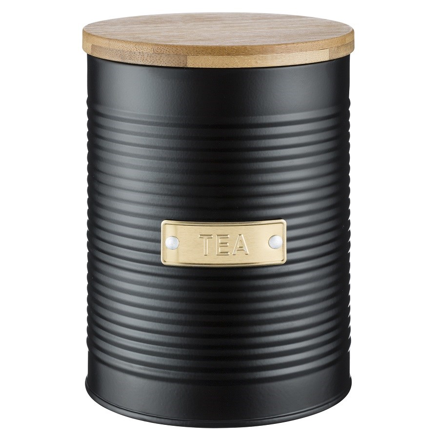 Емкость для хранения чая Otto поможет организовать рабочее пространство на вашей кухне. Эргономичный контейнер из эмалированной стали снабжен бамбуковой крышкой с воздухопроницаемым уплотнителем из силикона, что поможет продлить свежесть продукта и защитит его от воздействия влаги. При создании изделия дизайнеры используют золотистый декор, который безупречно сочетается с матовым покрытием черного цвета. Благодаря этому емкость добавит элегантности классическому и современному интерьеру кухни. Помимо чая в банке можно хранить любые сыпучие продукты.
