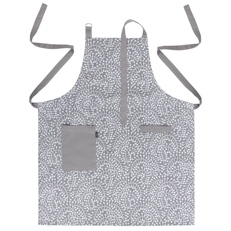 Фартук из хлопка серого цвета с принтом Спелая Смородина из коллекции Scandinavian touch защитит одежду во время готовки и работы на кухне. Модель с накладным карманом и клапаном для кухонного полотенца, бретель нагрудника регулируется по длине. Стильный фартук с растительным принтом органично впишется в интерьер любой современной кухни и будет отлично сочетаться с другим кухонным текстилем из этой же серии. Материал – экологически чистый хлопок.