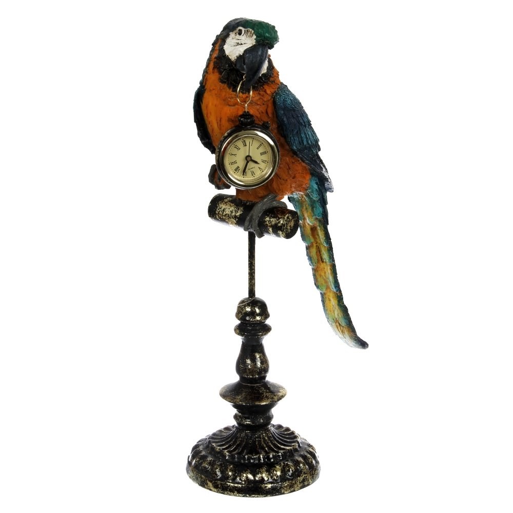 Фигура декоративная "Попугай" с часами, L19 W12 H40,5 см