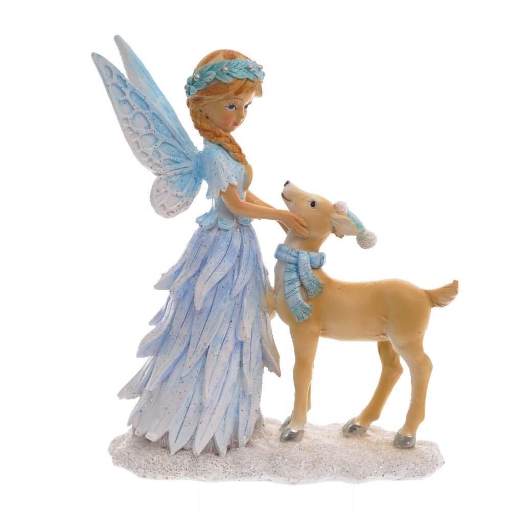 Фигурка декоративная "Фея с олененком", изготовлена из полимерных материалов. Размер: L14 W6 H17 см, упаковка-коробка.