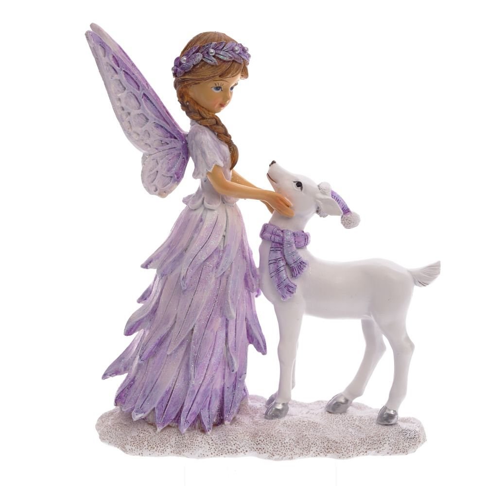 Фигурка декоративная "Фея с олененком", изготовлена из полимерных материалов. Размер: L14 W6 H17 см, упаковка-коробка.