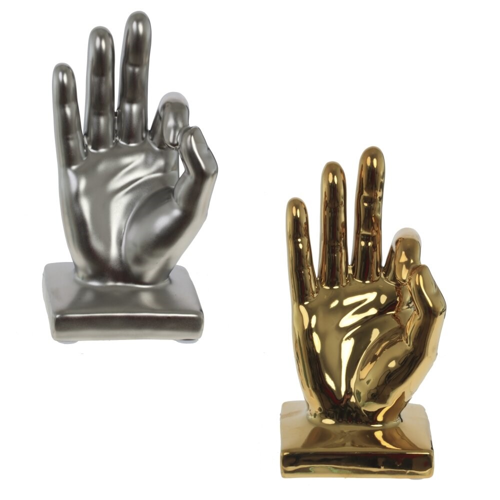 Оригинальная фигурка в виде жеста руки выглядит необычно и ярко. Будет замечательным и необычным подарком, а также стильным украшением интерьера. Представлена в двух вариантах.