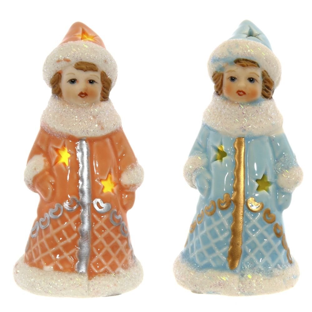 Фигурка декоративная "Снегурочка" с подсветкой, изготовлена из фарфора. Размер: L5 W5 H10 см. Представлена в двух вариантах. . Работает от двух батареек LR44.