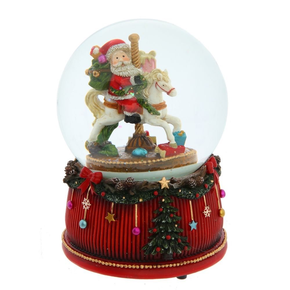 Фигурка декоративная в стекл. шаре с муз.и функц. движения "Дед Мороз" D10 см, L10 W10 H15 см