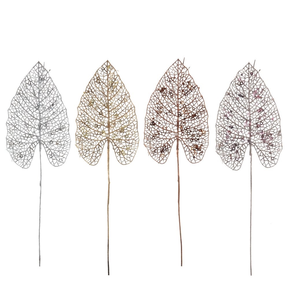 Ветка с мерцающим от глитера ажурным листом . Используется для новогоднего и рождественского декорирования дома. Будет прекрасно сочетаться с самыми разными ветками и цветами в интерьерных композициях, а так же на елке.