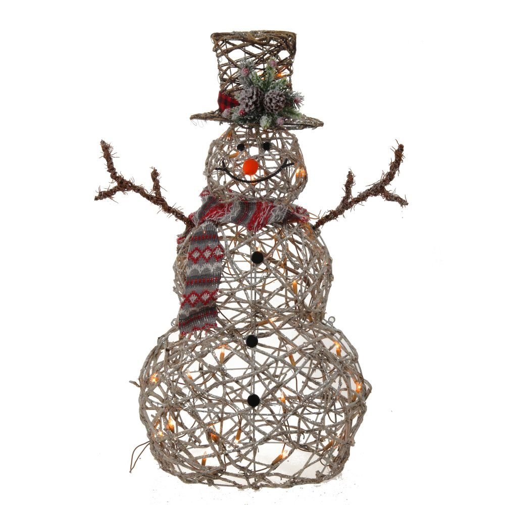 Изделие декоративное с подсветкой "Снеговик". Добавить праздничные нотки в обстановку поможет световая фигура снеговика. Теплое сияние завораживает взгляд в ожидании праздничных чудес. Размер: L38 W30 H90 см. Материал: металлический каркас, натуральные ветки. Работает от сети 220V.