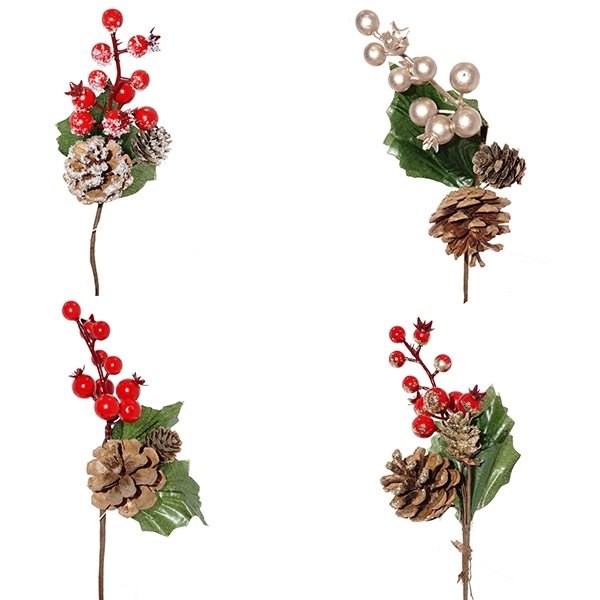 Эта новогодняя ветка – настоящая находка для праздничного декора. Станет отличным самостоятельным украшением, а также прекрасно впишется в любую композицию. Представлена в четырех вариантах.
