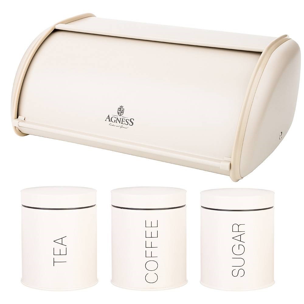 Хлебница и банки для сыпучих продуктов являются частью системы хранения в доме.