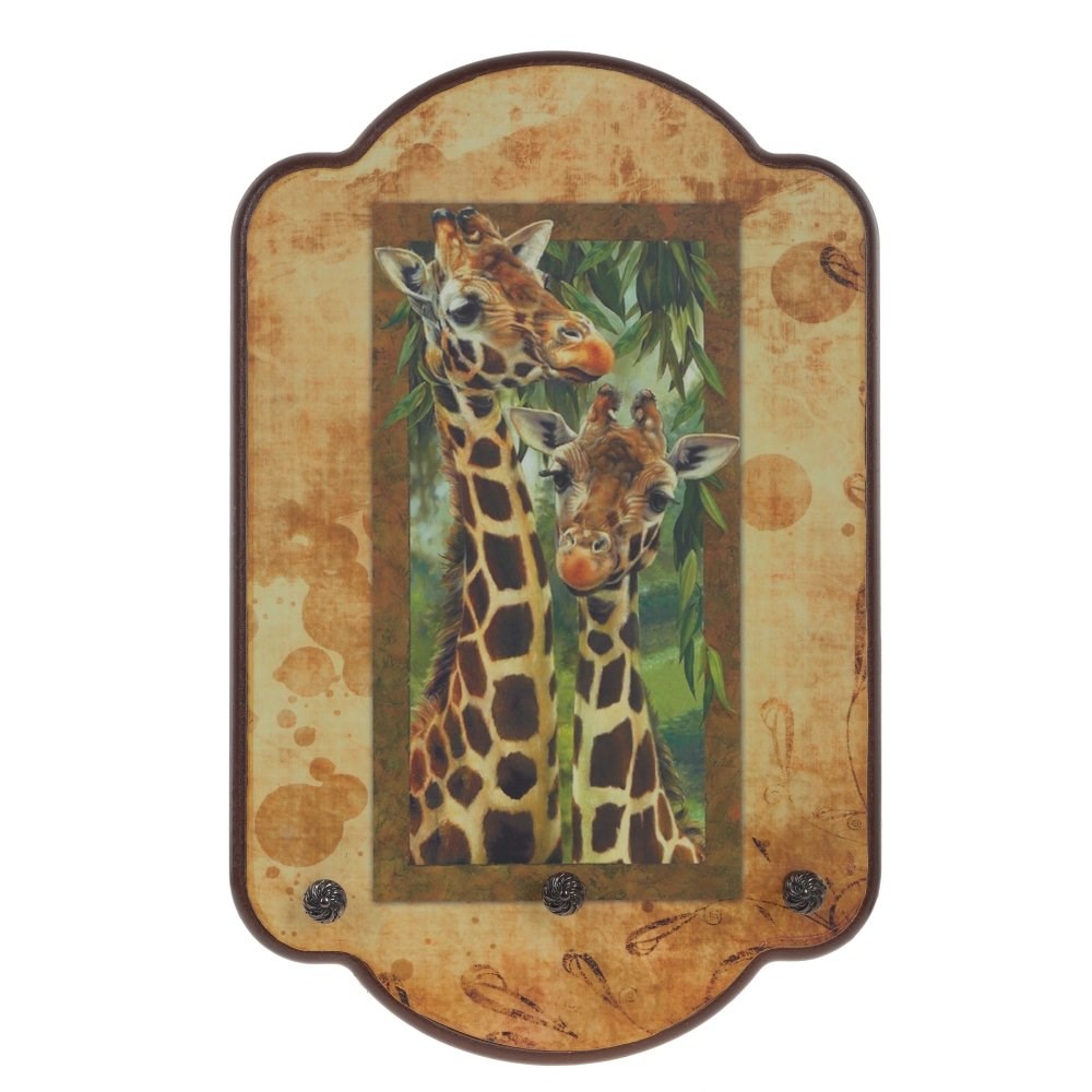 Ключница открытого типа с тремя крючками. Украшена изображением двух обаятельных жирафов . Ключница – предмет не только красивый, но и функциональный, поэтому ей найдется место и в квартире, и в загородном доме.