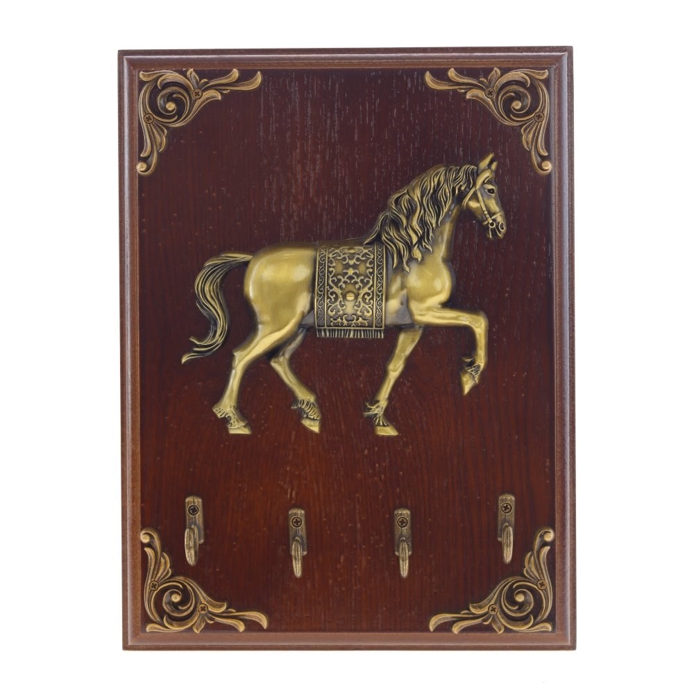 Ключница настенная, открытого типа, с четырьмя металлическими крючками и декором в виде лошади и ажурных угловых элементов. Ключница – предмет не только красивый, но и функциональный, поэтому ей найдется место и в офисе, и в квартире, и в загородном доме.