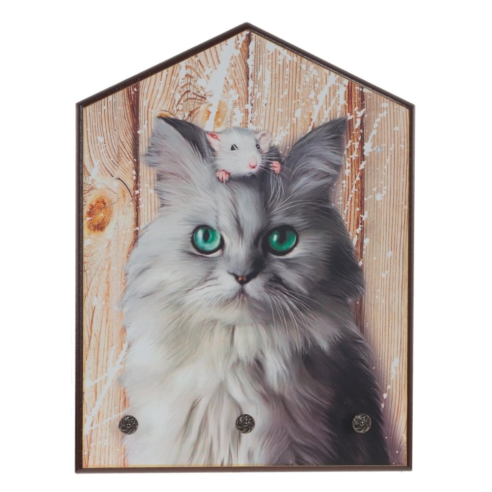 Ключница в форме домика открытого типа с тремя крючками. Украшена изображением кошечки. Ключница – предмет не только красивый, но и функциональный, поэтому ей найдется место и в квартире, и в загородном доме.