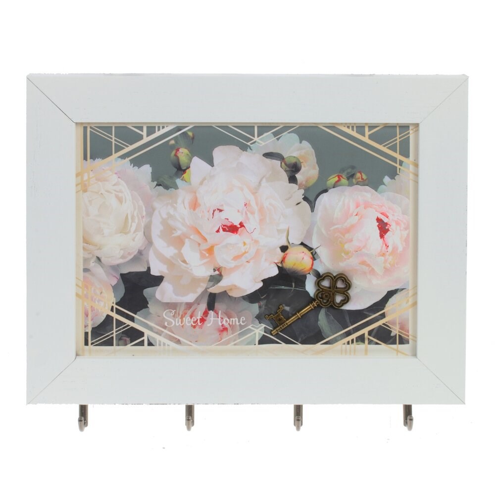 Ключница открытого типа с четырьмя крючками. Украшена цветочным декором и металлическим элементом в виде ключа. Ключница – предмет не только красивый, но и функциональный, поэтому ей найдется место и в квартире, и в загородном доме.