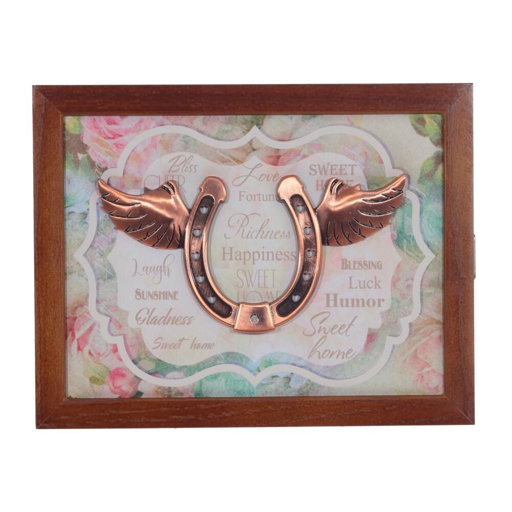 Ключница открытого типа с пятью крючками. Цвет рамки - коричневый. Центральная часть с изображением цветов и декором в виде подковы. Изделие выглядит современно, стильно и благородно. Не отказывайте себе в удовольствии созерцать это произведение каждый день.