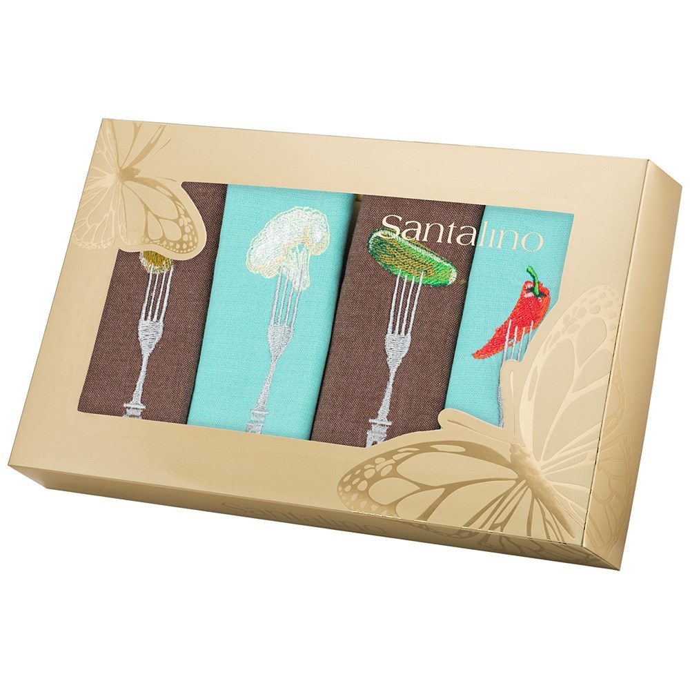 Комплект салфеток из 4-х шт 40х40 см "Бон аппетит",корич+бирюза, 100% хлопок ,.