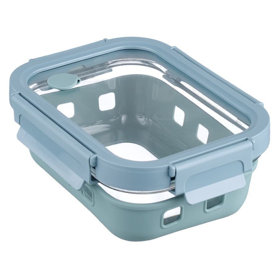 Контейнер стеклянный в чехле из силикона отлично подходит для хранения, запекания и транспортировки продуктов, в том числе готовых блюд. Емкость из боросиликатного стекла не впитывает запахи и загрязнения, легко моется. Крышка с надежными пластиковыми замками на каждой стороне обеспечивает плотное закрывание. Материалы не содержат бисфенол-А и являются абсолютно безопасными для здоровья. Наличие специального вентиляционного отверстия позволяет выпустить лишний воздух или горячий пар, что повышает герметичность и улучшает условия хранения продуктов. Силиконовый чехол без труда снимается для более тщательной очистки контейнера.