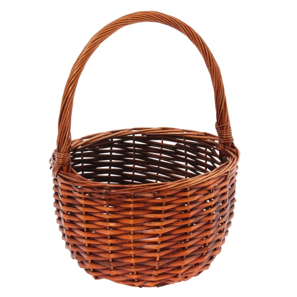 Стильная и удобная плетеная корзина с ручкой. Изготовлена из лозы и лыка. Можно использовать как для хранения вещей и продуктов, так и в качестве декоративного элемента в доме.