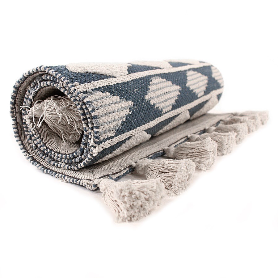 Ковер из хлопка синего цвета с геометрическим принтом ethnic, 70х160 см