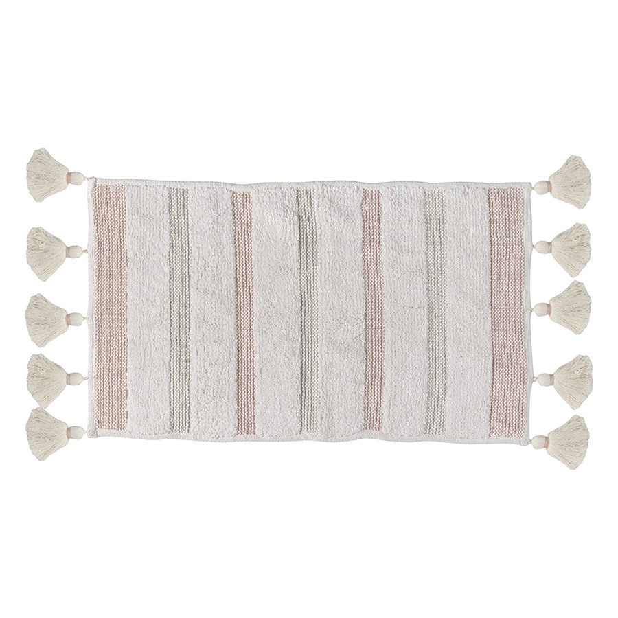 Коврик для ванной из хлопка с кисточками из коллекции Ethnic украшен линейным рисунком в пастельных тонах и пышными кисточками с двух сторон. Модель органично впишется в интерьер ванной комнаты в любом современном стиле. Изделие выполнено из прочного высококачественного хлопка.