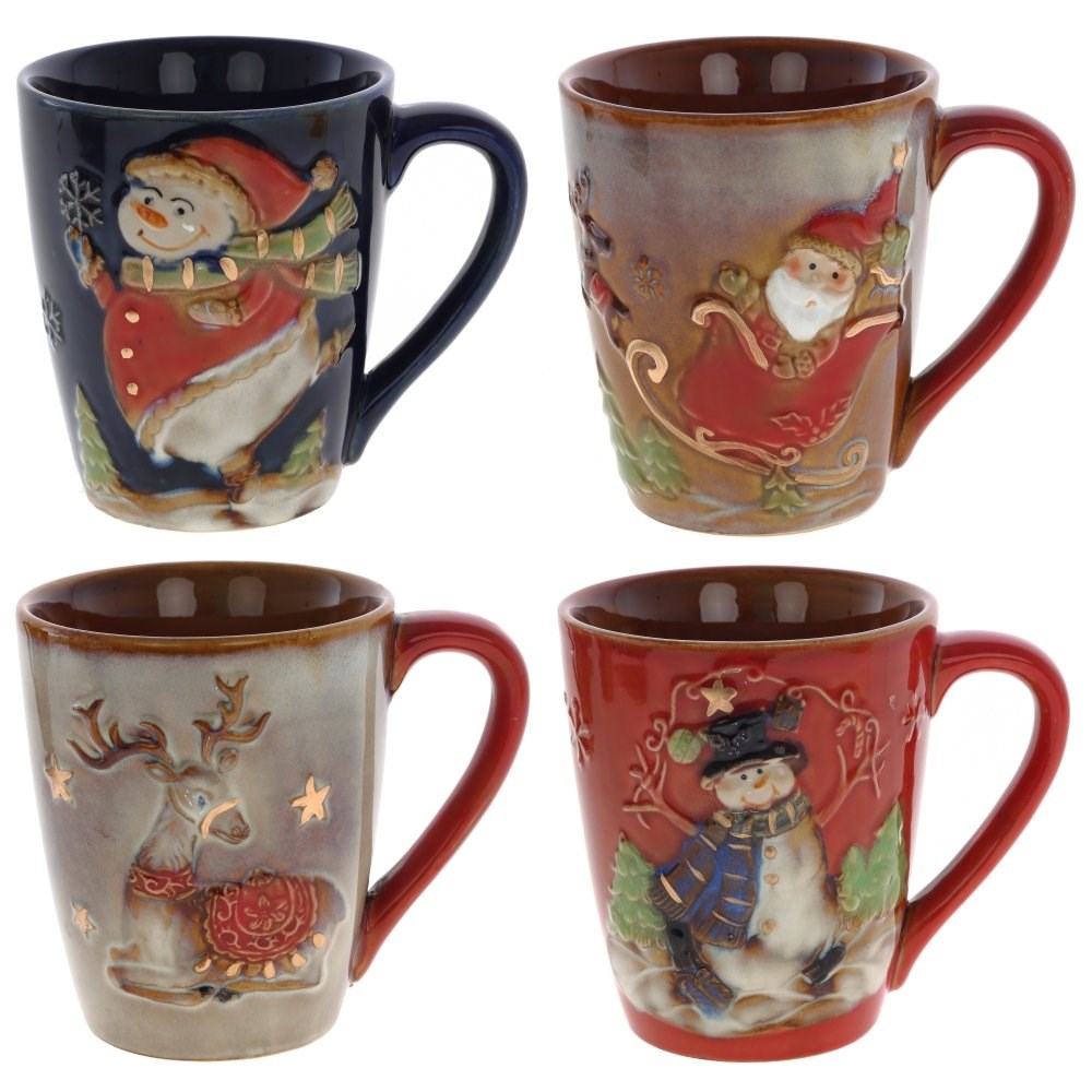 Кружка с новогодним декором, изготовлена из керамики. Размер: L13 W9,5 H11,5 см. Представлена в четырех вариантах.