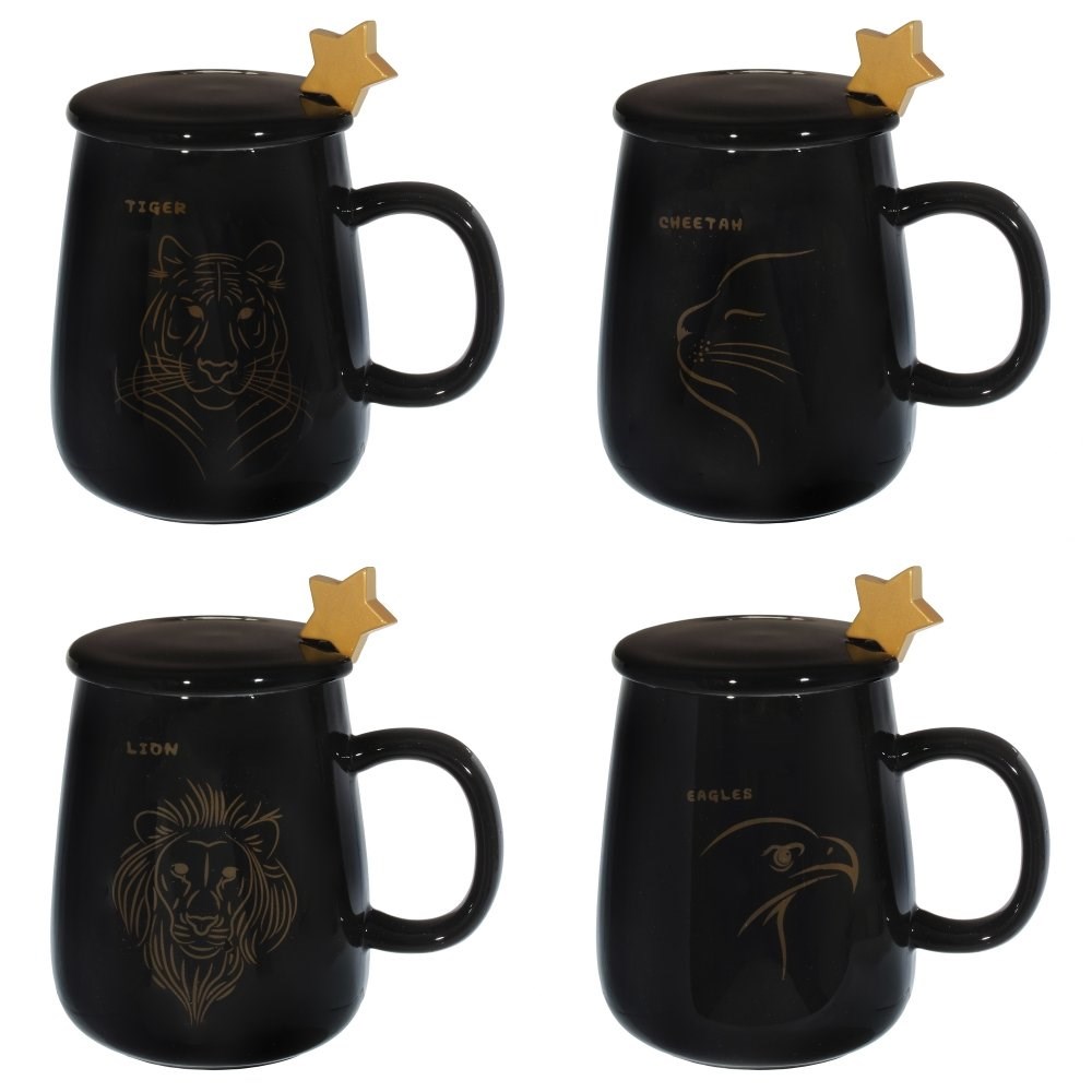 Кружка с крышкой и ложкой, изготовлена из фарфора и коррозионностойкой стали. Объем: 450 мл, размер: L12 W8,5 H11,5 см. Представлено в четырех вариантах. Упаковка-подарочная коробка.
