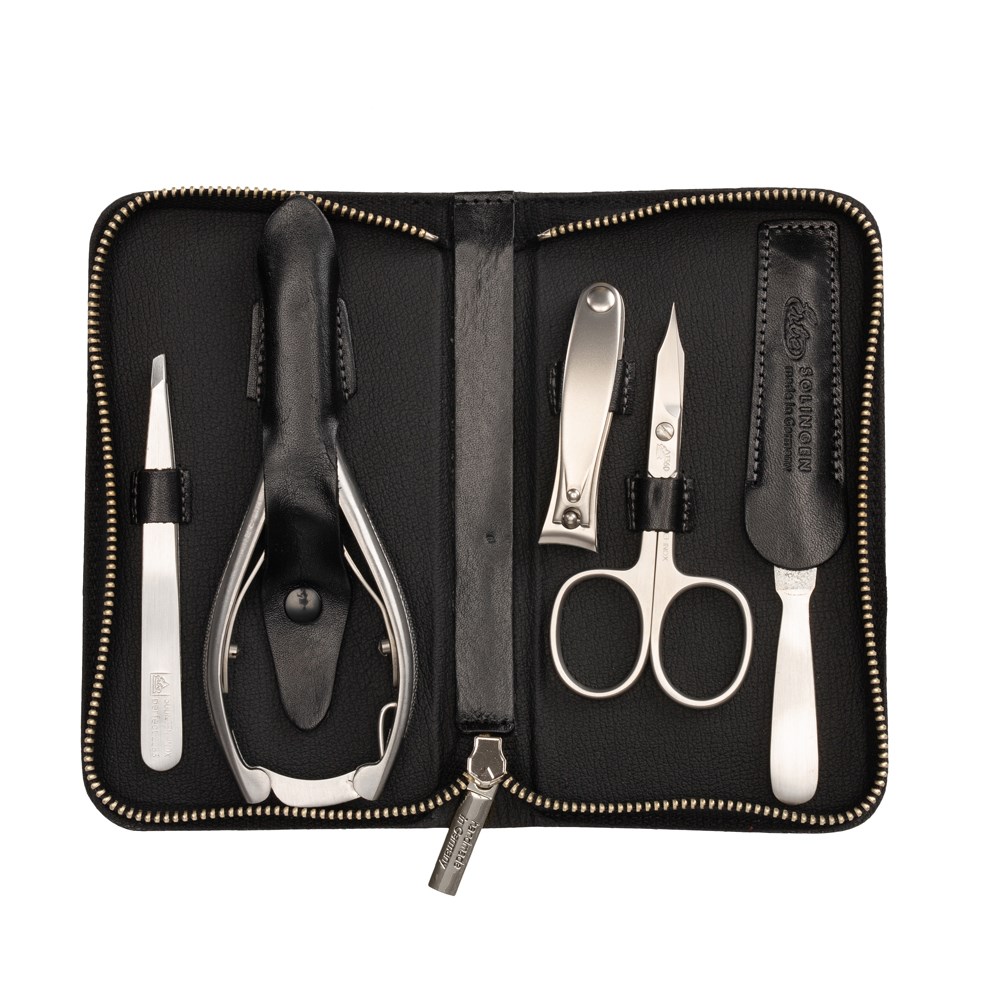 Маникюрный набор Erbe, 5пр. Футляр: натур.кожа, цвет черный/серый
