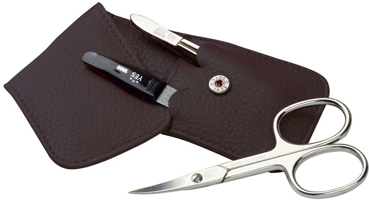 Маникюрный набор YES, 3 пр. Футляр: натуральная кожа, цвет коричневый