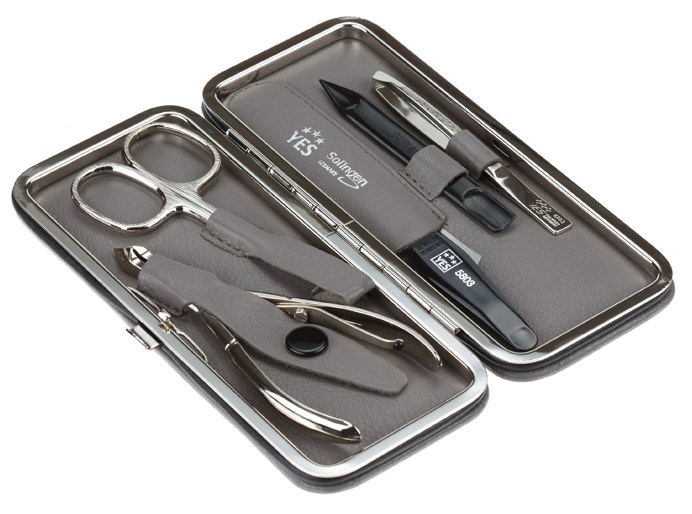 Маникюрный набор YES, 5 пр. Футляр: натуральная кожа, цвет серый