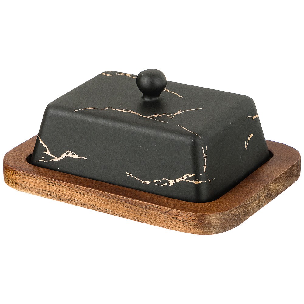 Масленка на деревянной подставке коллекция "Золотой мрамор" цвет: black