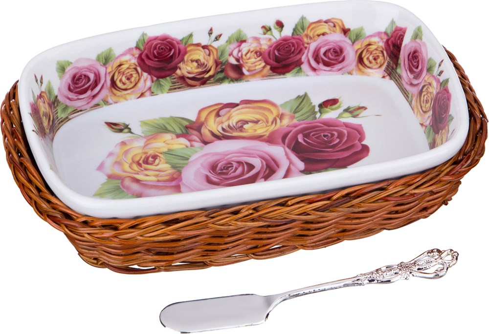 Масленка с ножом для масла на подставке 16*10 см H=3,5 см