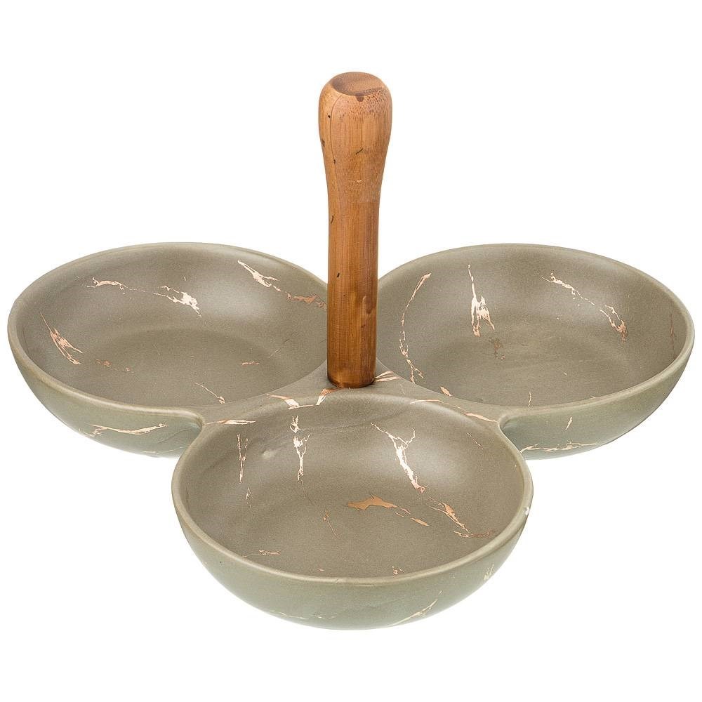 Менажница с деревянной ручкой коллекция "Золотой мрамор" цвет: gray 23,5*23,5*16,5 см