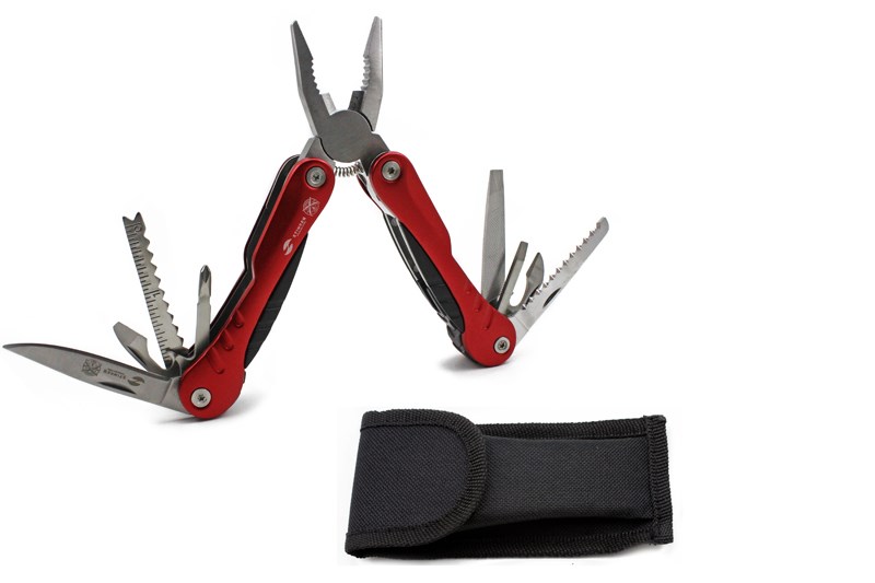 Мультитул Stinger, сталь/алюминий, (красный), 9 инструментов, нейлоновый чехол, короб.картон