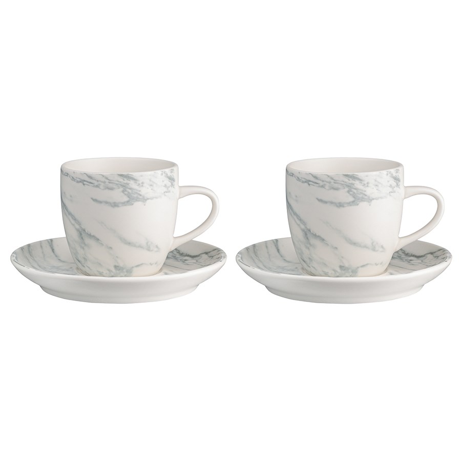 Дизайн имитирует натуральный мрамор. Чашки и блюдца выполнены из высококачественного фарфора. Поставляются в подарочной упаковке.