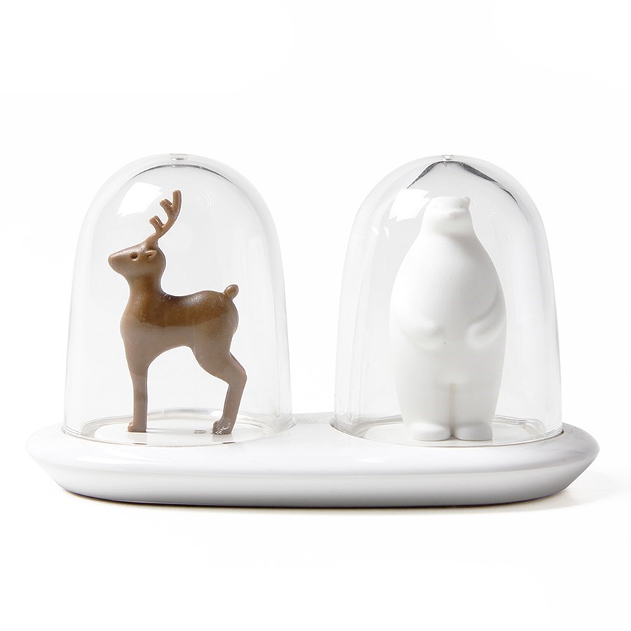 Набор Wildlife от Qualy привнесет в сервировку свежую ноту и украсит кухонный интерьер. Дизайн солонки и перечницы вдохновлен дикой природой и служит напоминанием о необходимости проявлять заботу об окружающем мире. Изделия выполнены из прочных и устойчивых к износу материалов – акрила и АБС-пластика. Емкости для специй удобно хранятся на подставке.