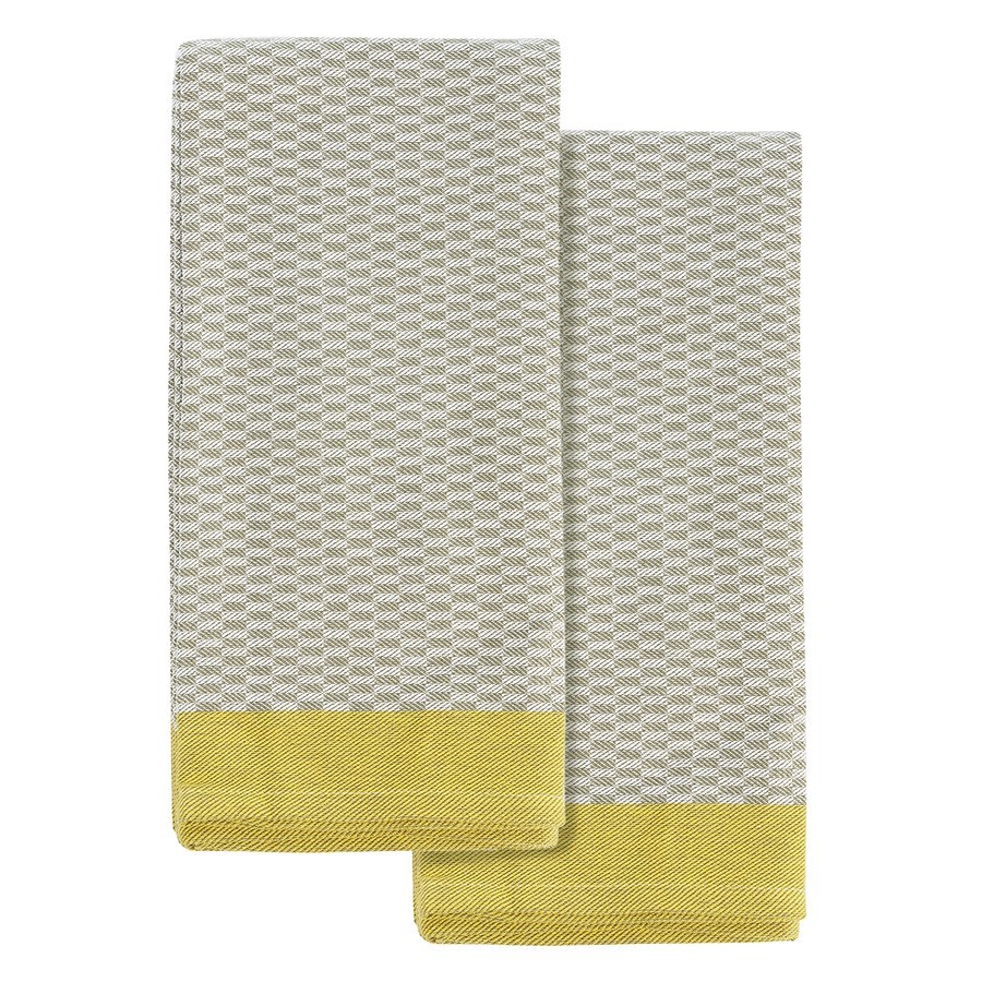 Набор из двух кухонных жаккардовых полотенец оливкового цвета из коллекции Essential станет помощником на кухне и настоящим украшением интерьера. Изделия выполнены из 100% хлопка. Нежный и прочный материал очень практичен — хорошо впитывает влагу, быстро сохнет и не оставляет на посуде ворсинок при протирании. Полотенца имеют удобную петельку для подвешивания на крючок.