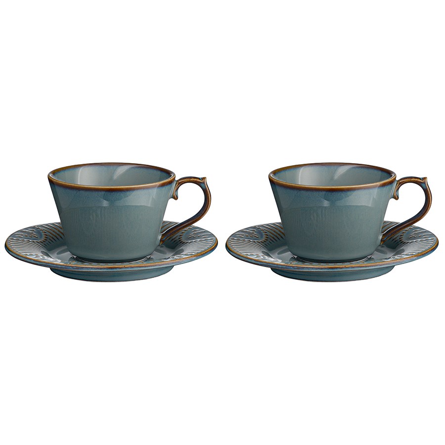 Чашки и блюдца выполнены из высококачественного фарфора и покрыты реактивной глазурью, благодаря которой изделия приобретают неповторимую текстуру. Поставляются в подарочной упаковке.