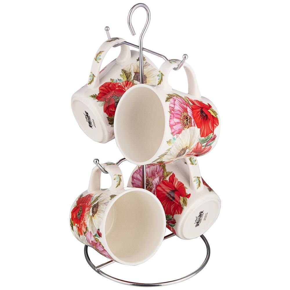 Набор кружек на металл.подставке lefard "Маки" 4 шт 350 мл