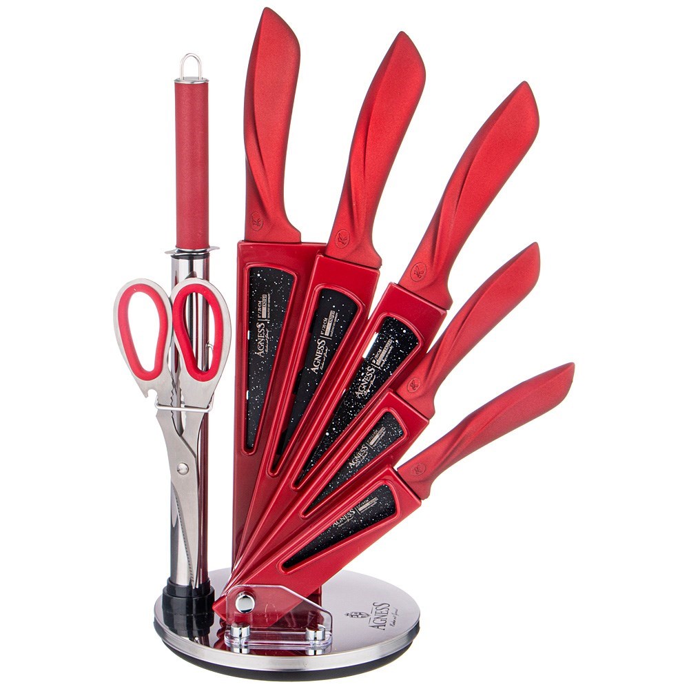Набор ножей agness с ножницами и мусатом на пластиковой подставке, 8 предметов