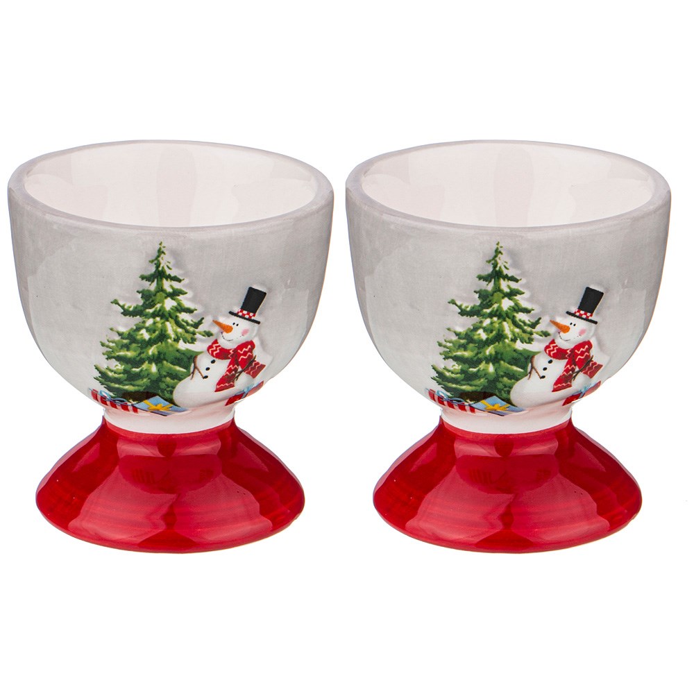Набор подставок под яйцо из 2 шт коллекция "Веселые снеговики" 5,5*5,5*5,9 см