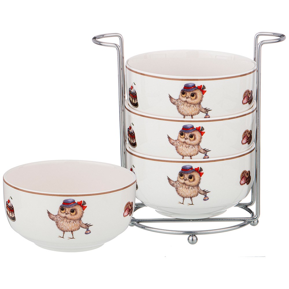 Набор салатников 4 шт на металл.подставке "Совушки" 11 см