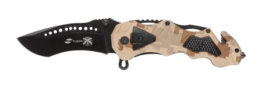 Нож складной Stinger,100 мм (черный), рукоять: алюминий (песочный камуфляж), картонная коробка