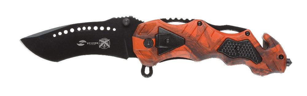 Нож складной Stinger, 100 мм (черный), рукоять: алюминий (рыжий камуфляж), картонная коробка