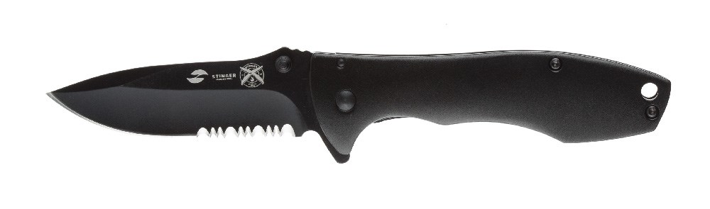 Нож складной Stinger, 80 мм (черный), рукоять: сталь/алюминий (черный), картонная коробка