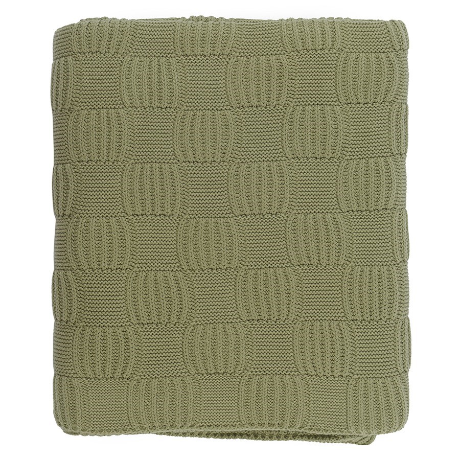 Плед из хлопка рельефной вязки травянисто-зеленого цвета из коллекции Essential, 130х170 см