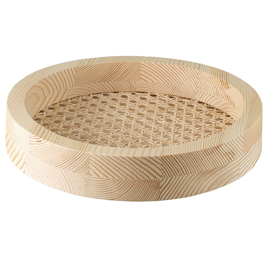 Поднос из дерева и ротанга круглый Woodnes, D23 см, светлое дерево