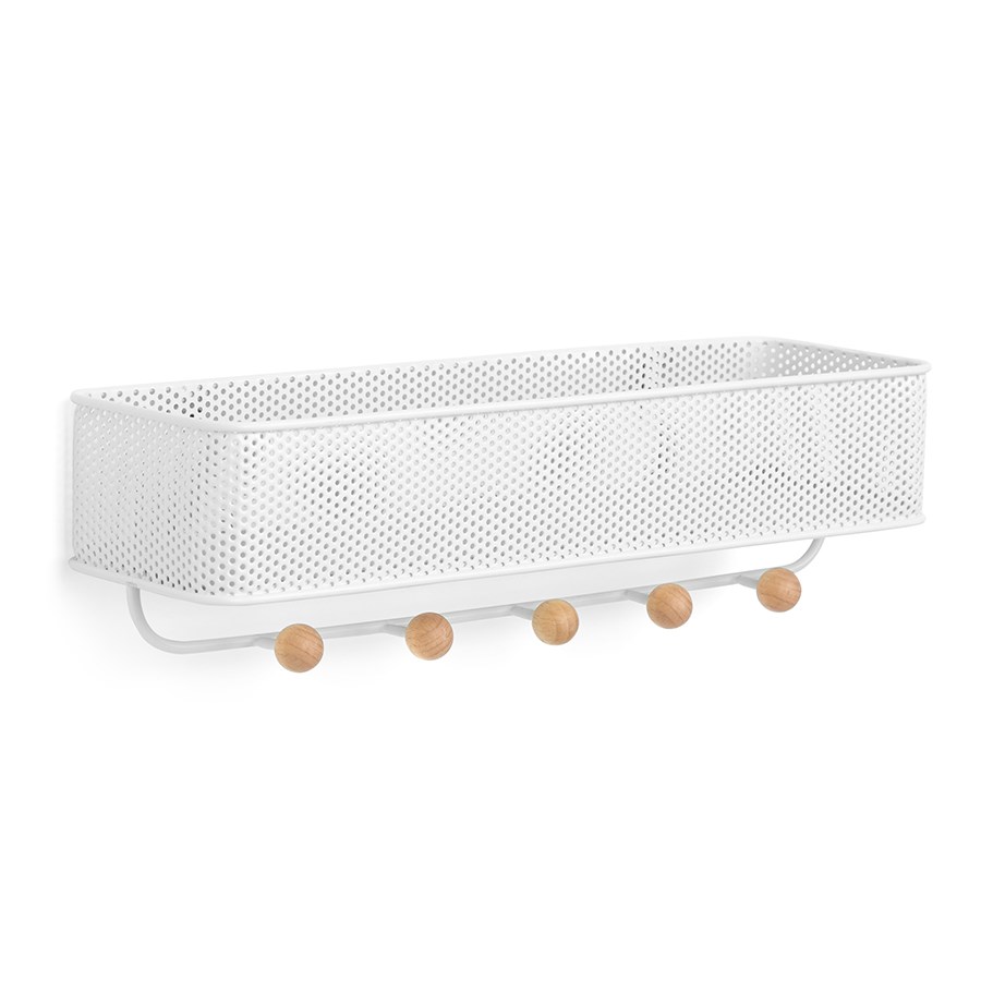 Настенный органайзер выполнен из перфорированного металла и натурального дерева. Пять крючков с круглыми деревянными наконечниками подойдут для ключей и аксессуаров. Сочетается по стилю с предметами из коллекции Promenade.