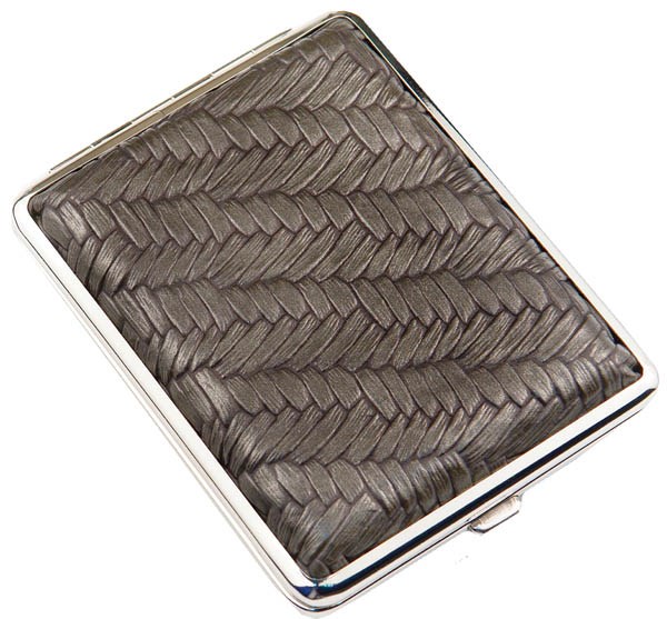 Портсигар S.Quire, сталь+искусственная кожа, бронзово-серый цвет с рисунком, 74*95*18 мм