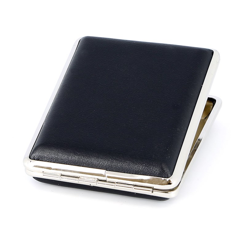 Портсигар S.Quire, сталь+искусственная кожа, черный цвет, гладкий, 74*95*18 мм